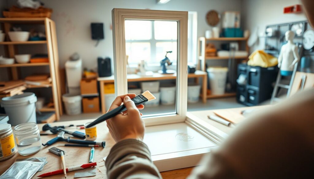 Vorbereitungen für das Streichen der Kunststofffenster