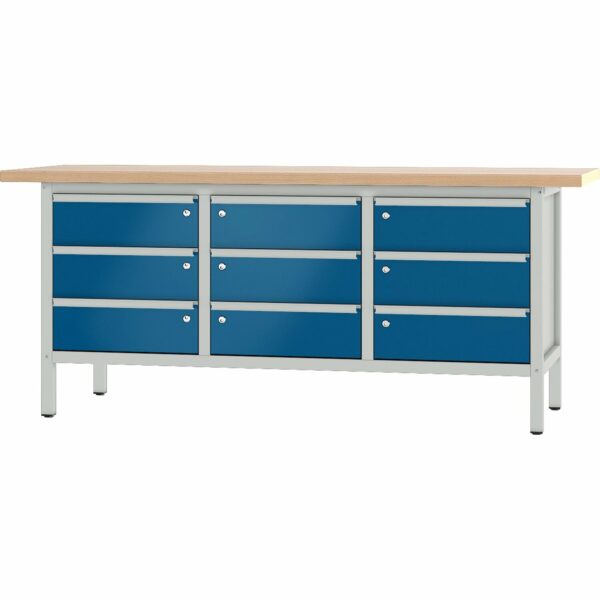 Pador Werkbank Baureihe 3 – 9 Schubladen, 200 cm: Dein Fundament für erfolgreiche Projekte
