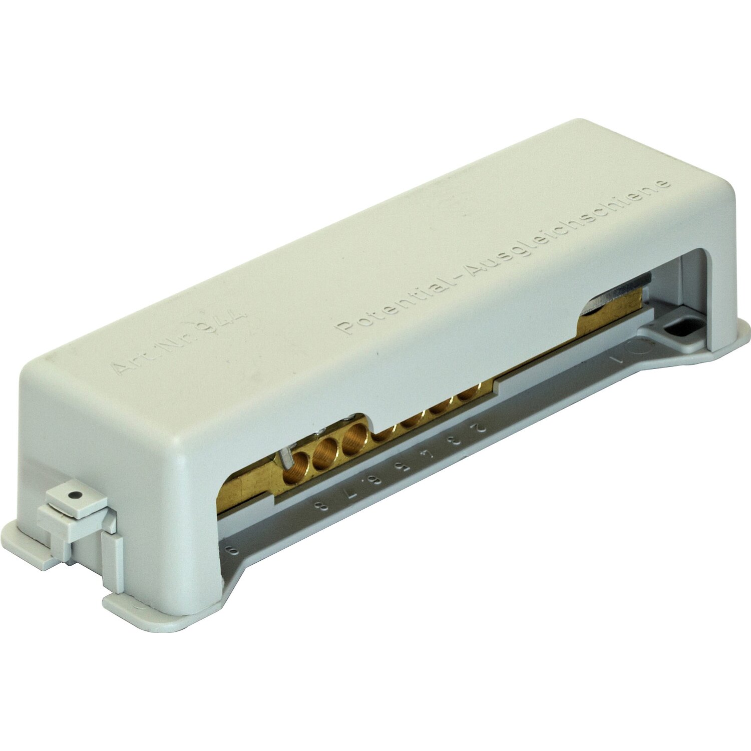 Eine Potentialausgleichsschiene schützt vor gefährlichen Spannungsunterschieden, die durch Fehlerströme oder Überspannungen entstehen können. Sie minimiert das Risiko von elektrischen Schlägen, Geräteschäden und Bränden.