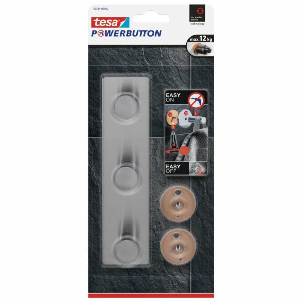 - 1 x Tesa Powerbutton Hakenleiste Classic Edelstahl