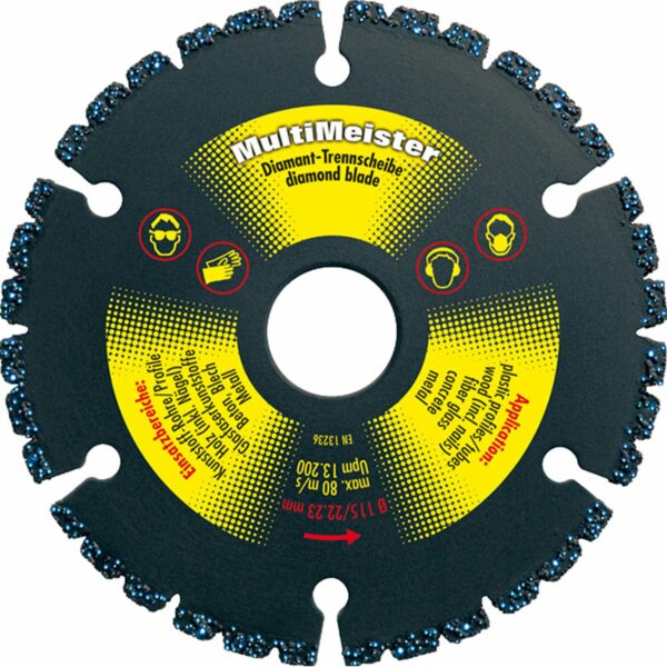 Die Trennscheibe Multimeister ist Ihr zuverlässiger Partner für alle Trennarbeiten. Sie ist die ideale Wahl für Heimwerker, Handwerker und alle, die Wert auf Qualität, Präzision und Vielseitigkeit legen. Mit dieser Trennscheibe sind Sie bestens gerüstet für jedes Projekt, egal wie anspruchsvoll es ist.